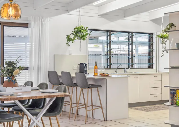 La villaestá situada en el barrio Golden Beach de Pelican Waters, a unos minutos a pie de Power Boat Club. La villa Pumicestone Beach House - 200M To The Passage se encuentra al lado de atracciones naturales como el Parque Keith Hill. Situados a a unos 3 km de los Faros de Caloundra, este alojamiento se encuentra también a una distancia de 3,1 km de lugares culturales como Caloundra Regional Art Gallery.